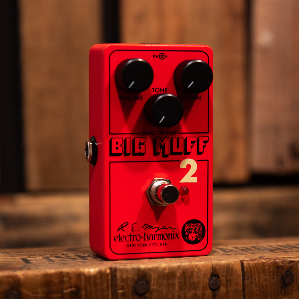 The Big Muff Pi 2 is similar to the classic Big Muff Pi but has a unique fuzz tone to further fill out your Muff flavor palate. With singing sustain and gobs of gain, the BMP2 remains true to the Big Muff Pi legacy with its own edge and response. A crispy top end, booming lows, and slightly less refined clipping gives the Big Muff Pi 2 a particularly cool feel that’s both unique and distinctly Big Muff. Slightly more dynamic, slightly more fuzzy, the Big Muff 2 is must-try for any BMP lover!